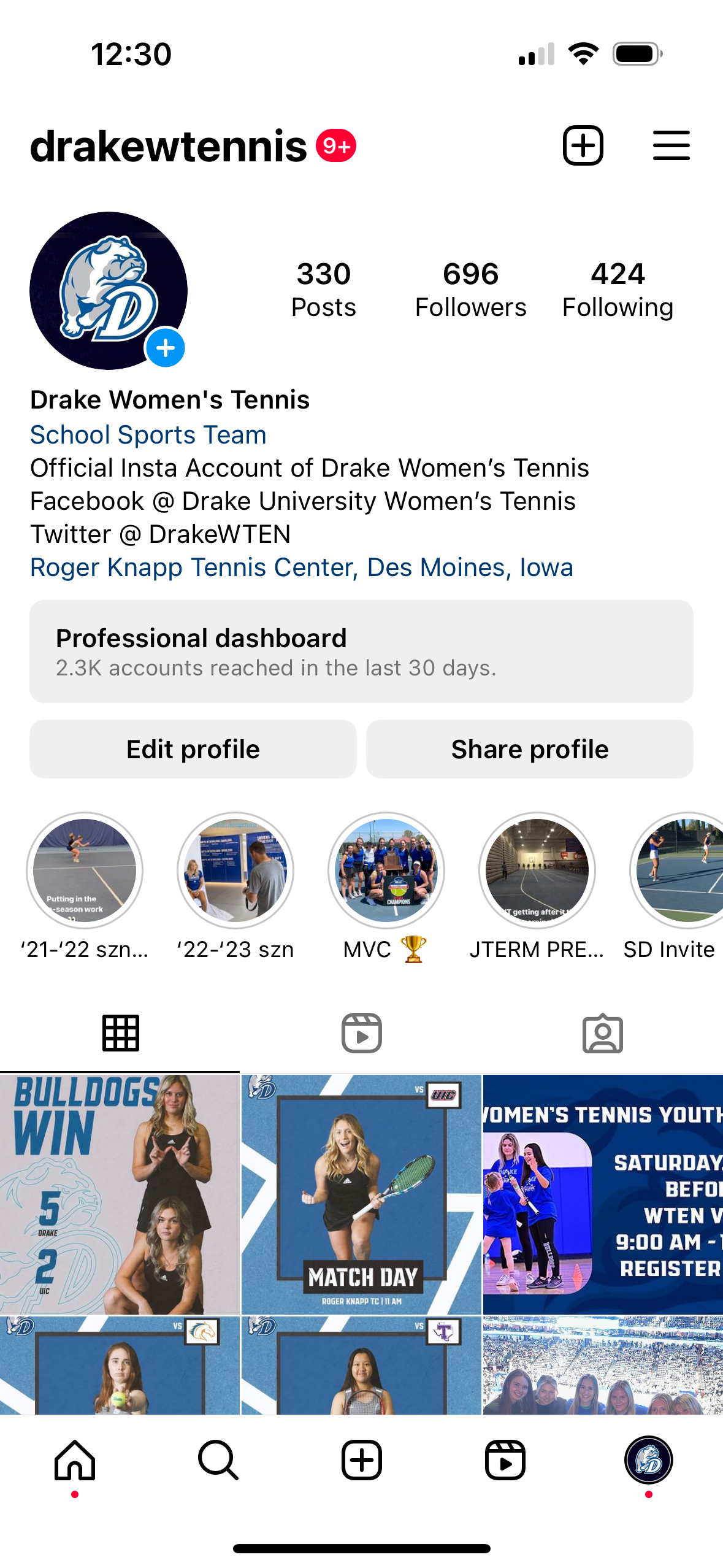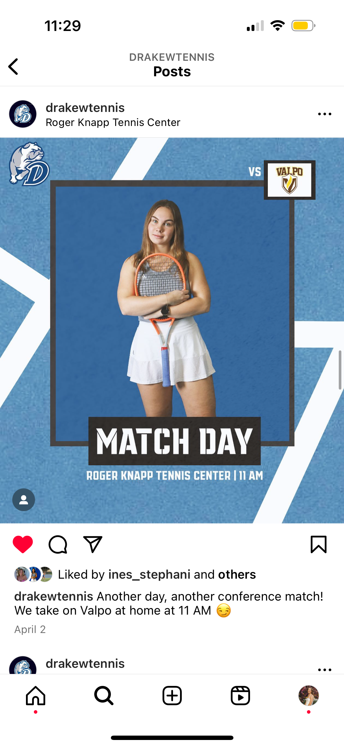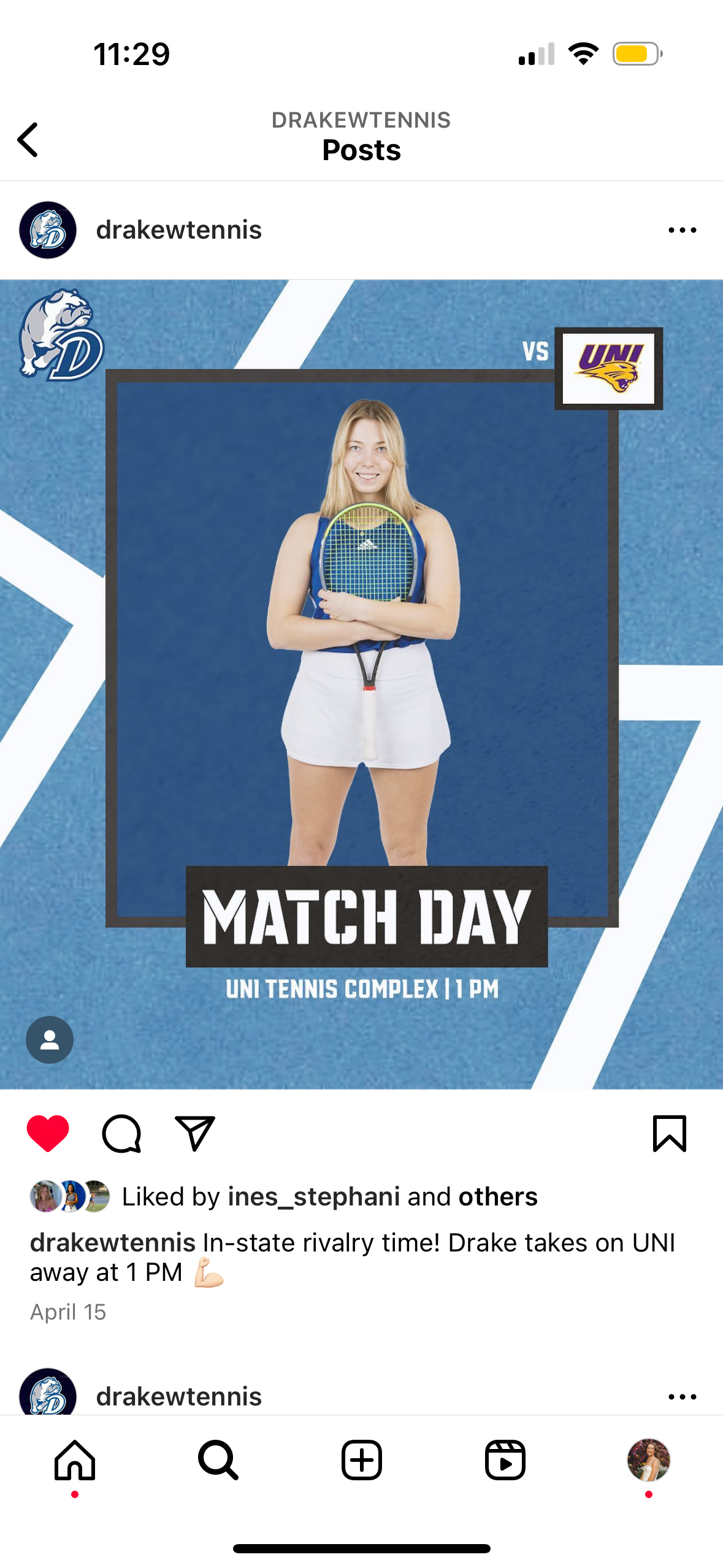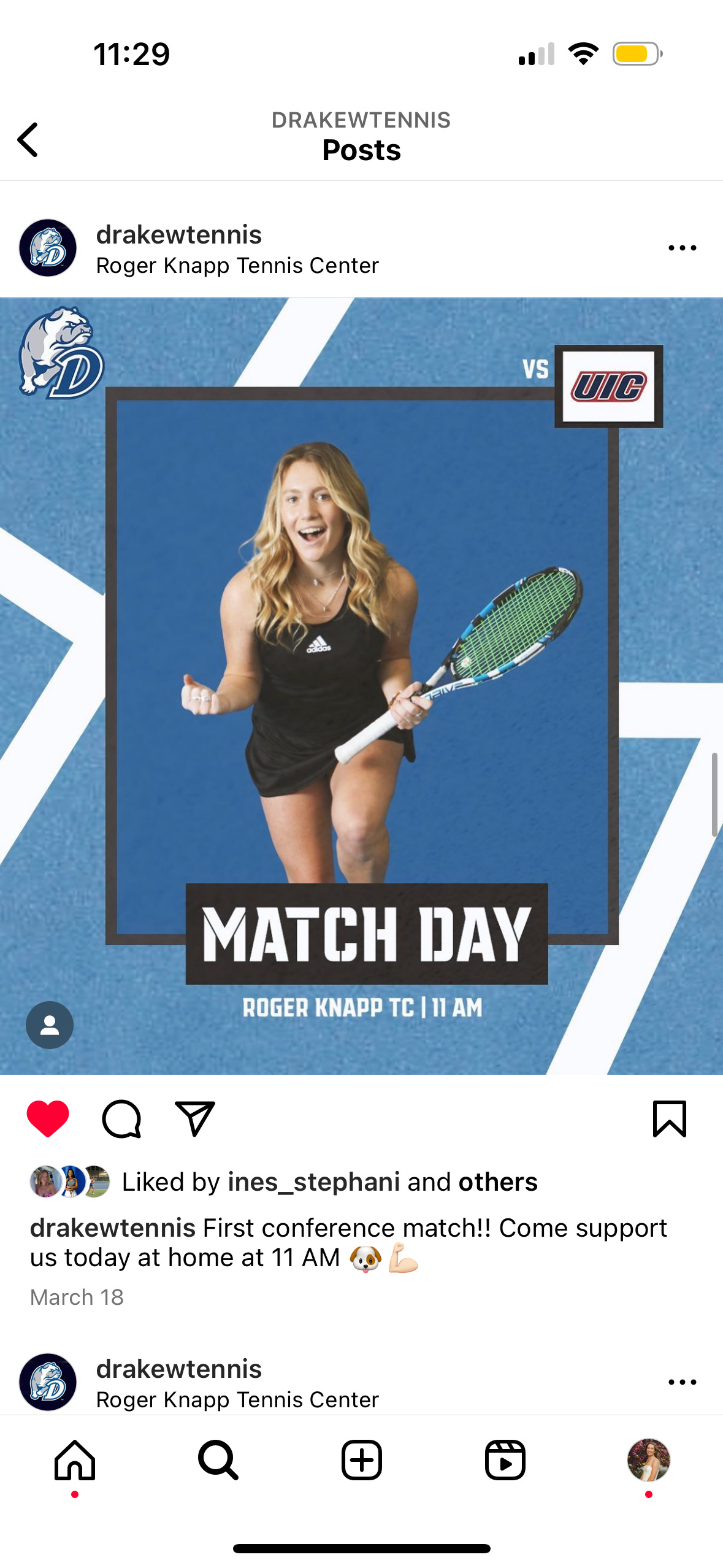 With my passion for sports and photography and as a member of Drake women's tennis, I took on a project to develop templates and social graphics for our team Instagram. The Instagram is self-led and I developed a more consistent branding system in line with Drake Athletics that is unique in comparison to other Division I tennis teams and builds excitement around the team.