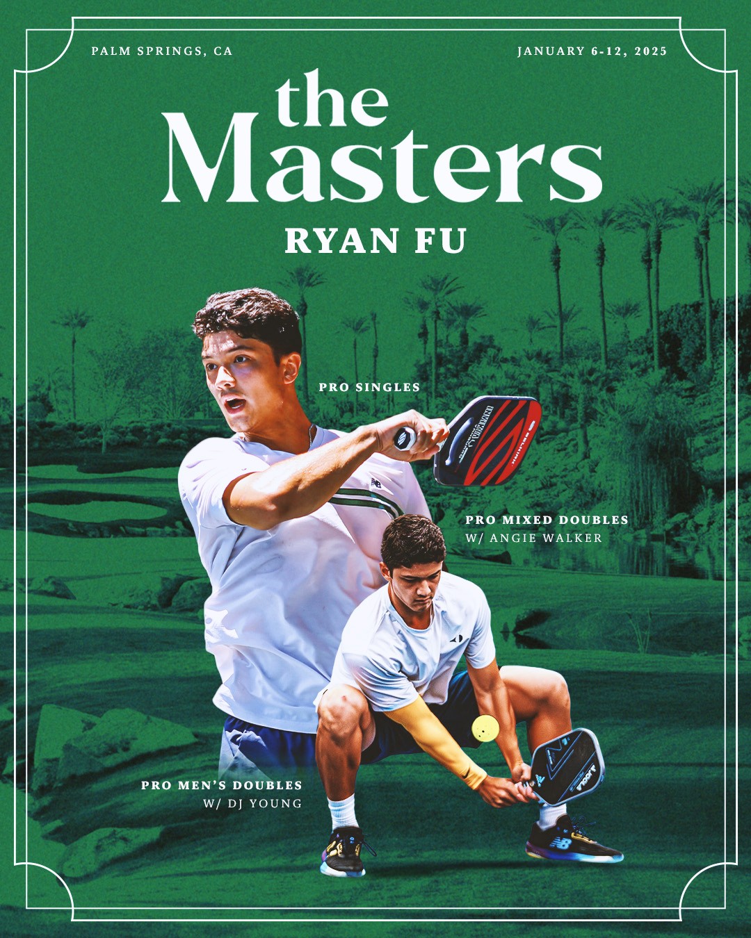 When I am not designing, you'll find me competing in pickleball throughout the country. I am passionate about the sport, and I noticed that many players were creating their own graphics to promote their upcoming tournaments. Many of these graphics were not professionally done and lacked flare. I decided to start my own business designing pickleball graphics for local and pro players. This work has really allowed me to be completely free creatively, meet so many new people, and connect me in another way to the sport I love.