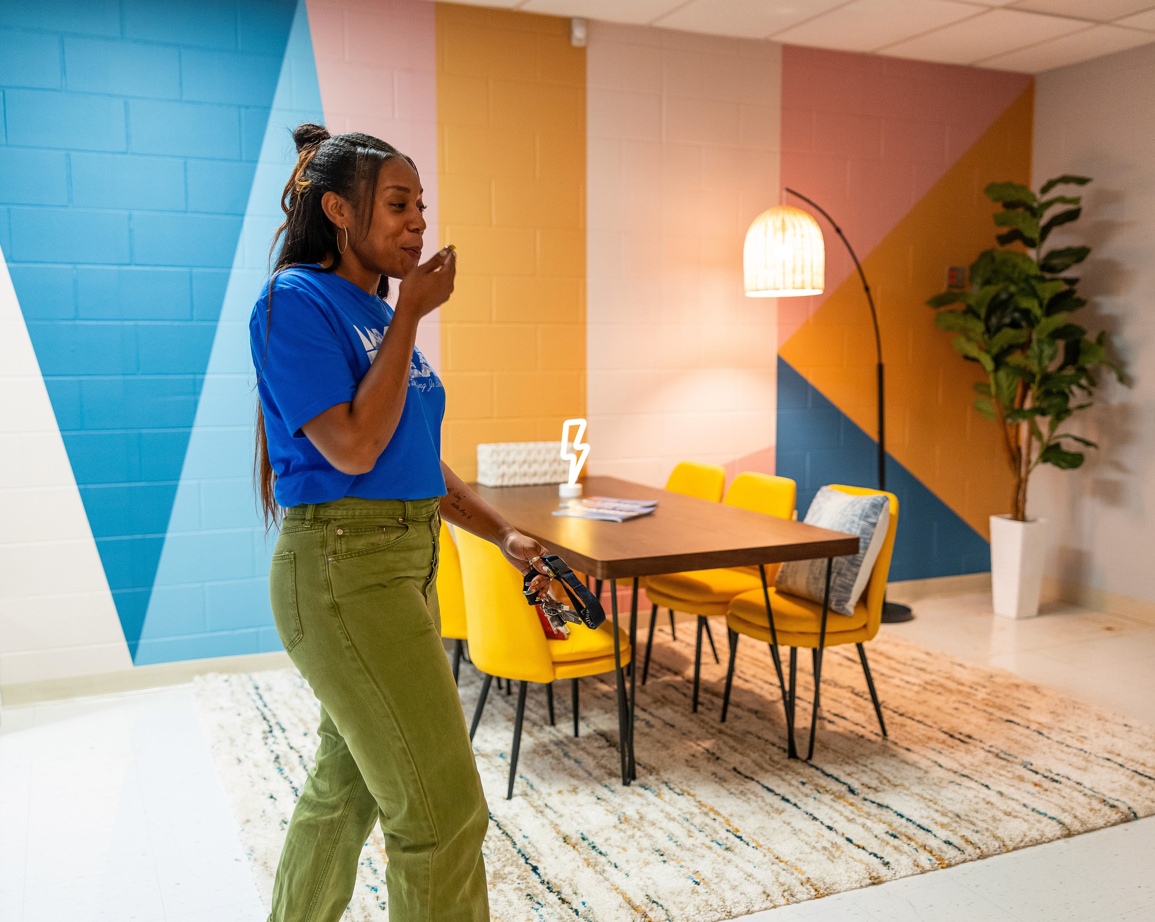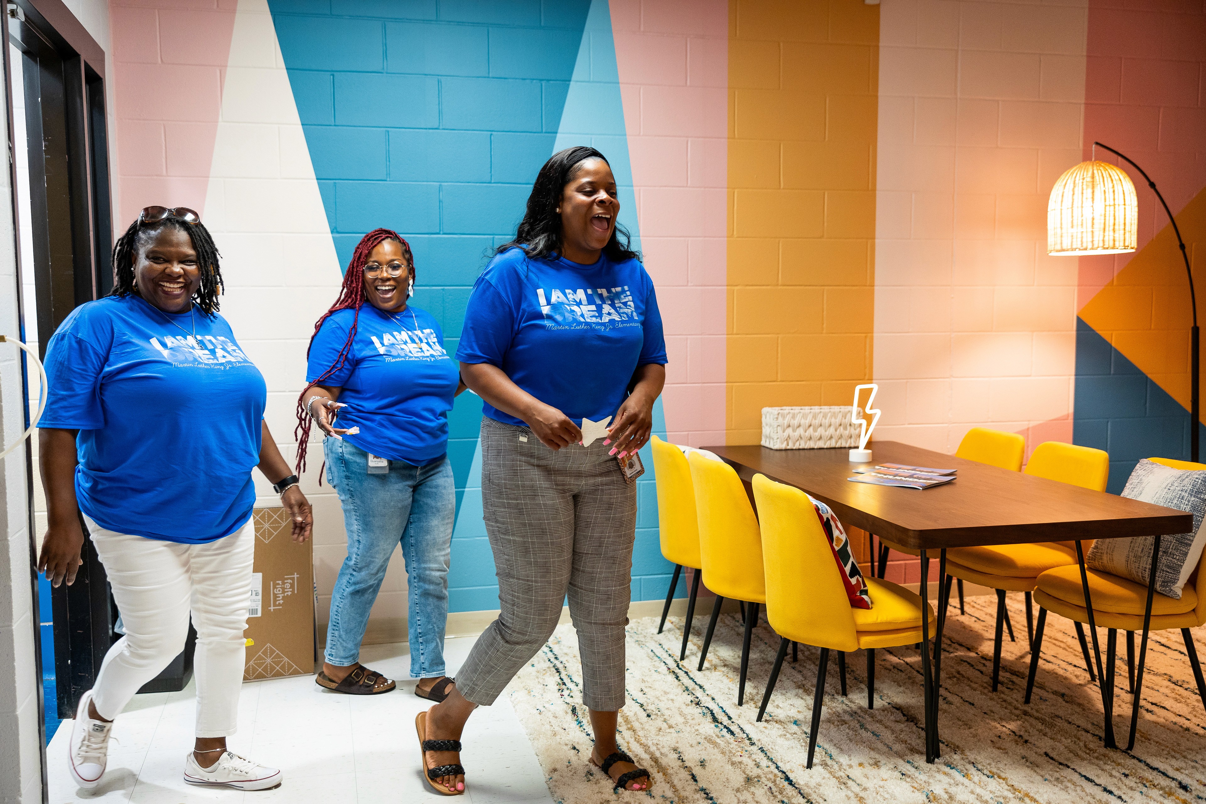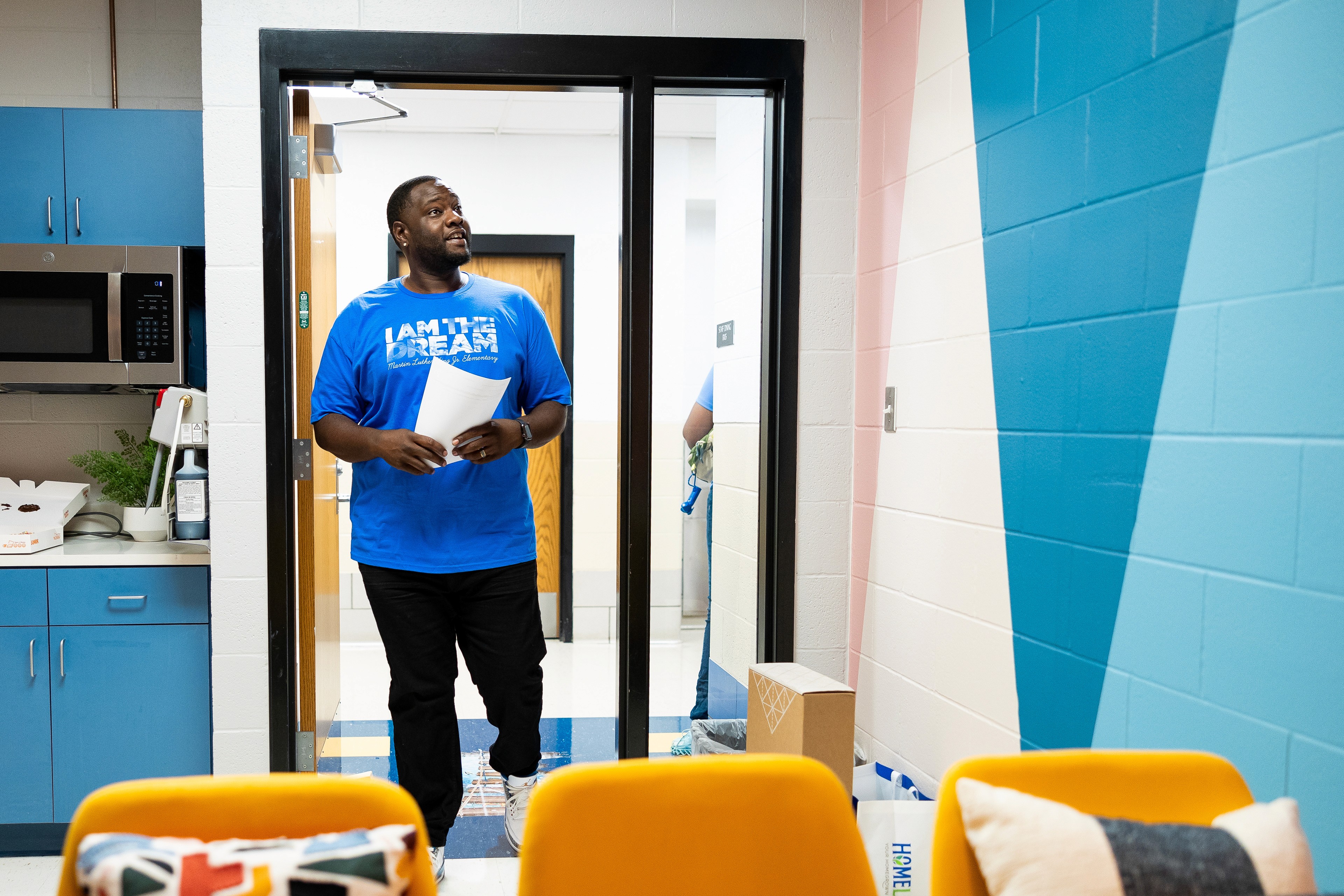 The finished mural completely transformed the break room, turning it into a space that now radiates energy and appreciation. The response from MLK Elementary staff and the local community was overwhelmingly positive, with many expressing how much the new space lifted their spirits. The project not only met the goal of giving back but also demonstrated the power of design to create meaningful, lasting impact in everyday environments.