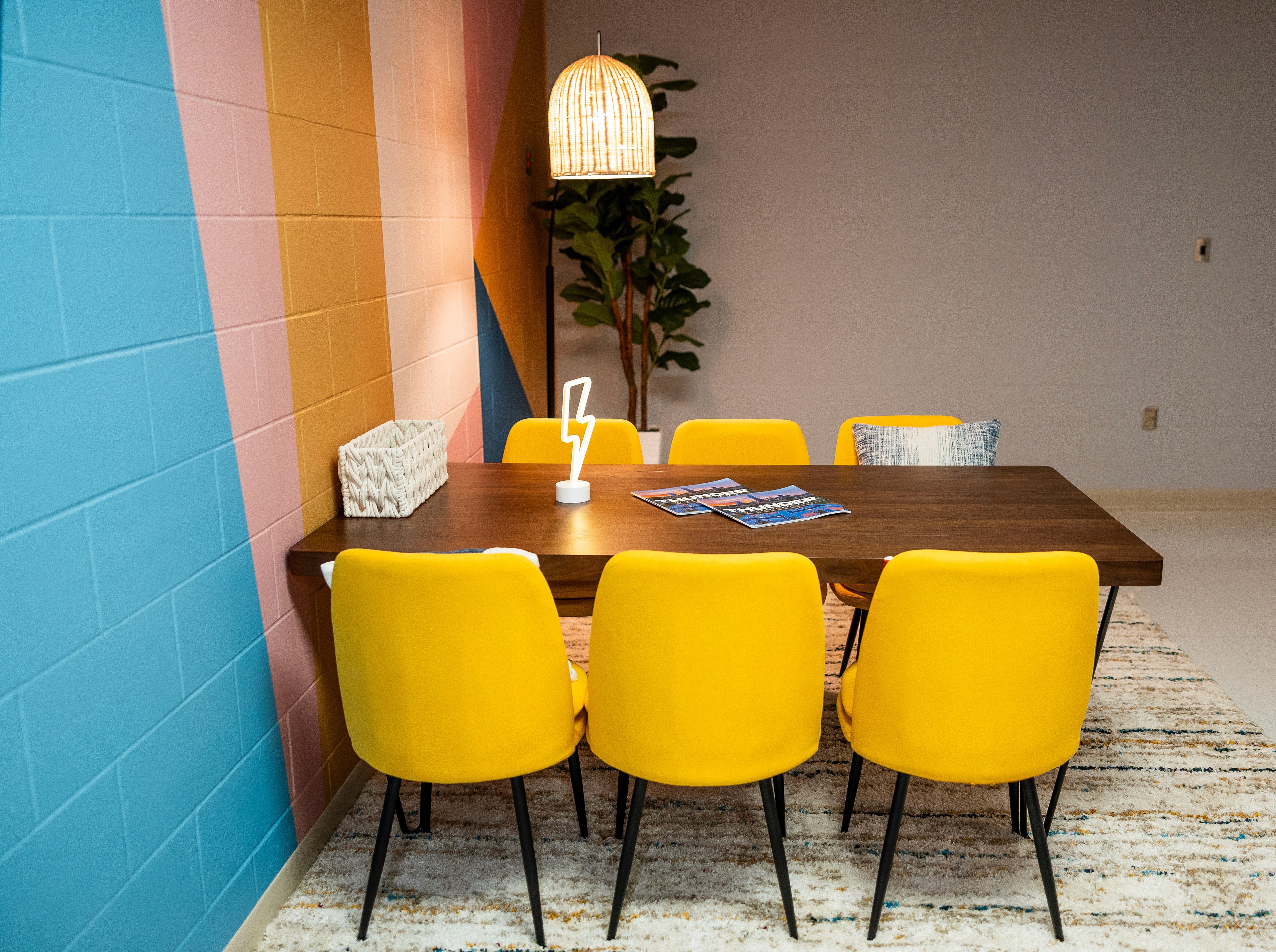 In collaboration with the Oklahoma City Thunder, I had the unique opportunity to design a mural for the break room at MLK Elementary School, a project aimed at giving back to the community and supporting education. My design concept was centered around creating a vibrant and uplifting space for the teachers, transforming the previously dull room into a haven of color and positivity. I meticulously chose a palette that reflected both the energy and spirit of the school, blending it with typography elements that represented the school (look closely and you'll see the letters MLK). This revitalized space now serves not just as a break room, but as a source of inspiration and joy for the hardworking educators at MLK Elementary School.