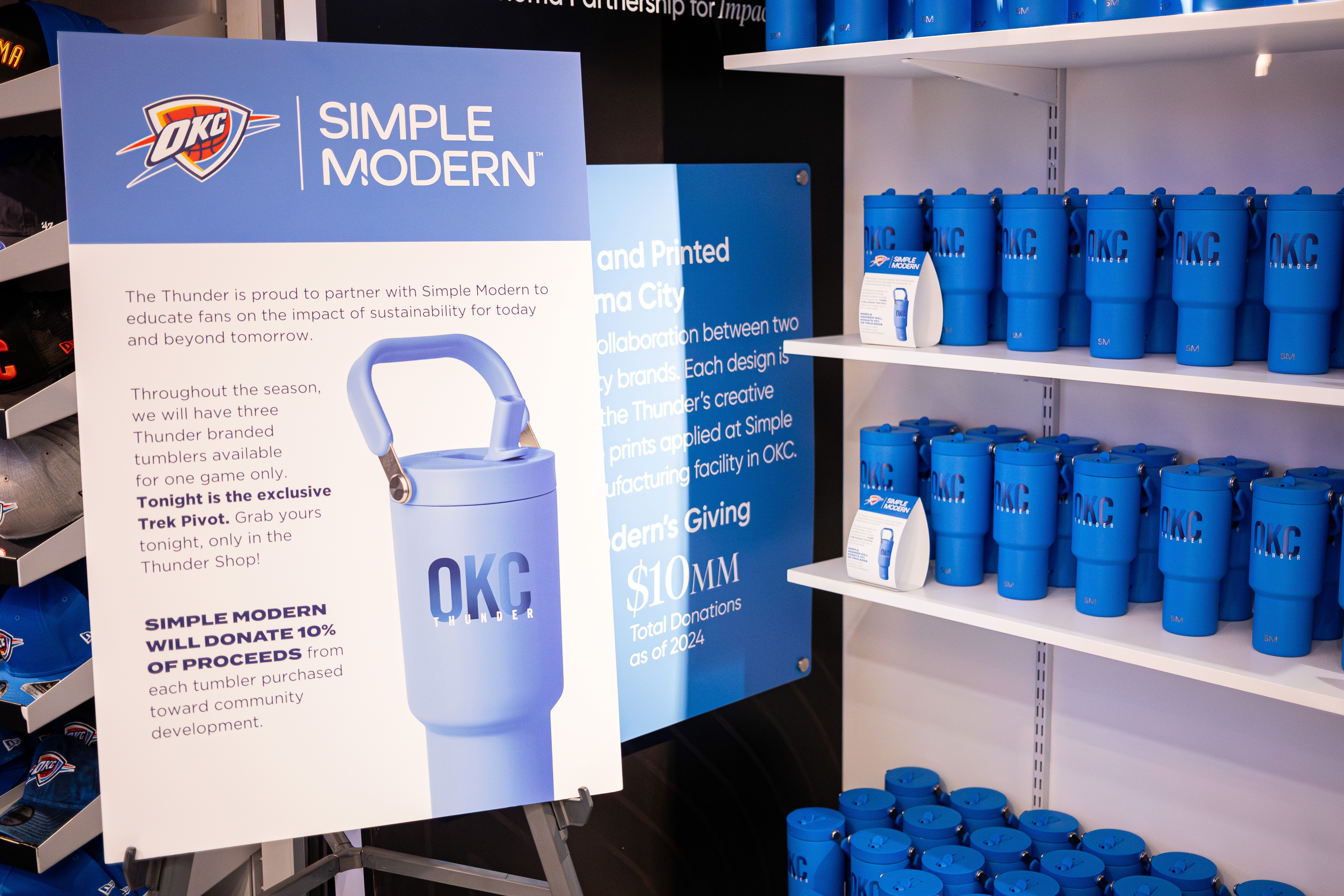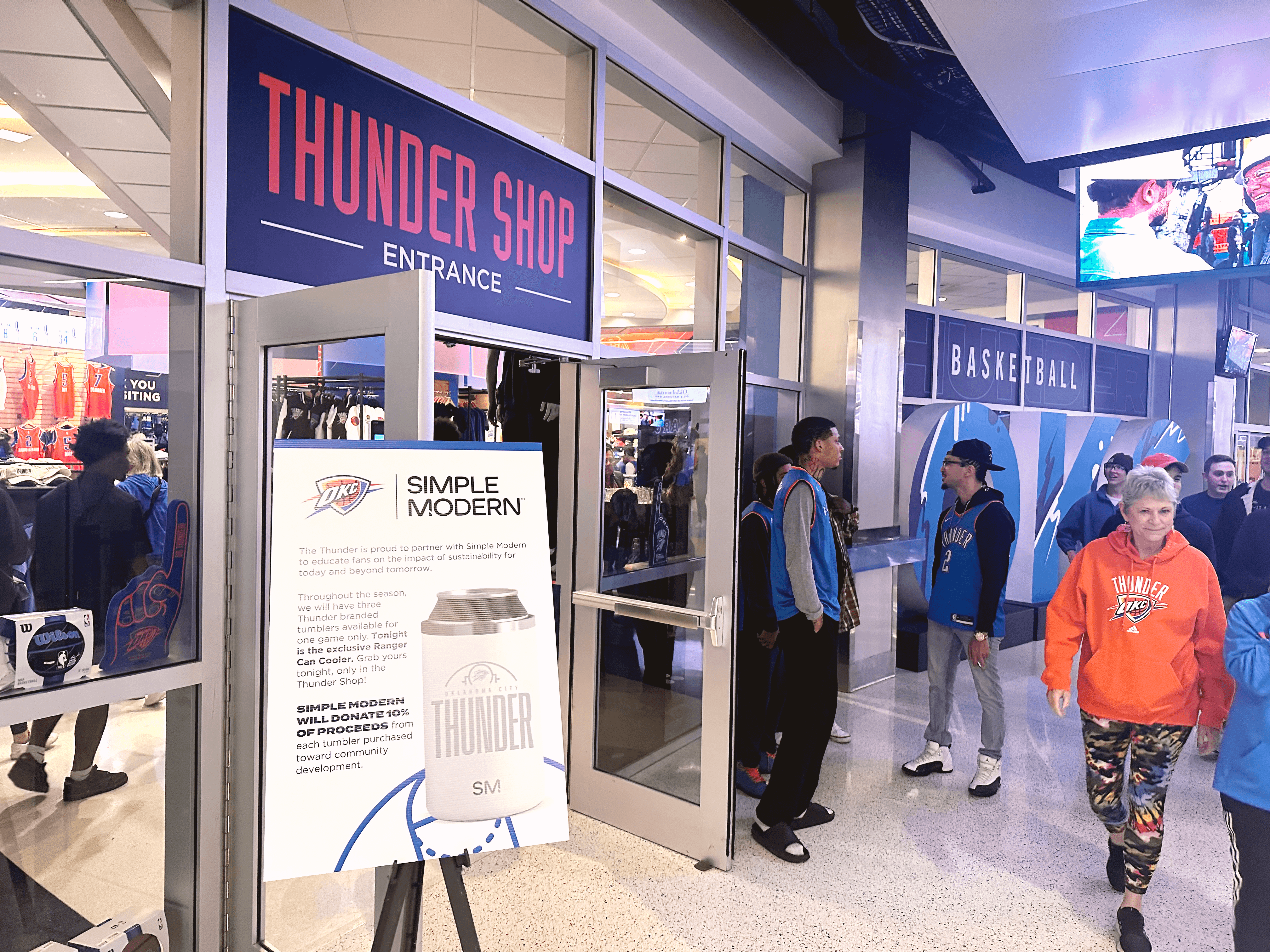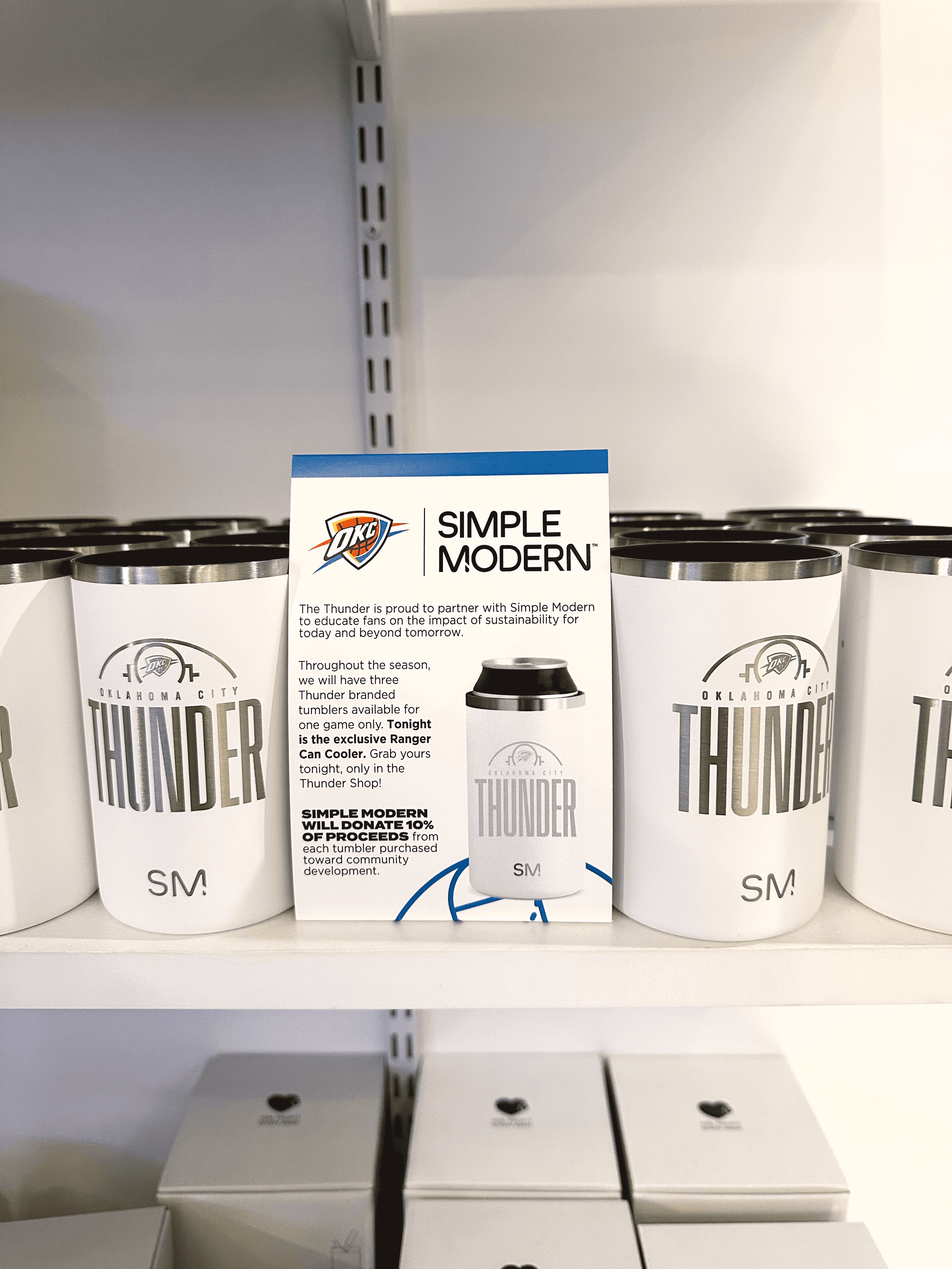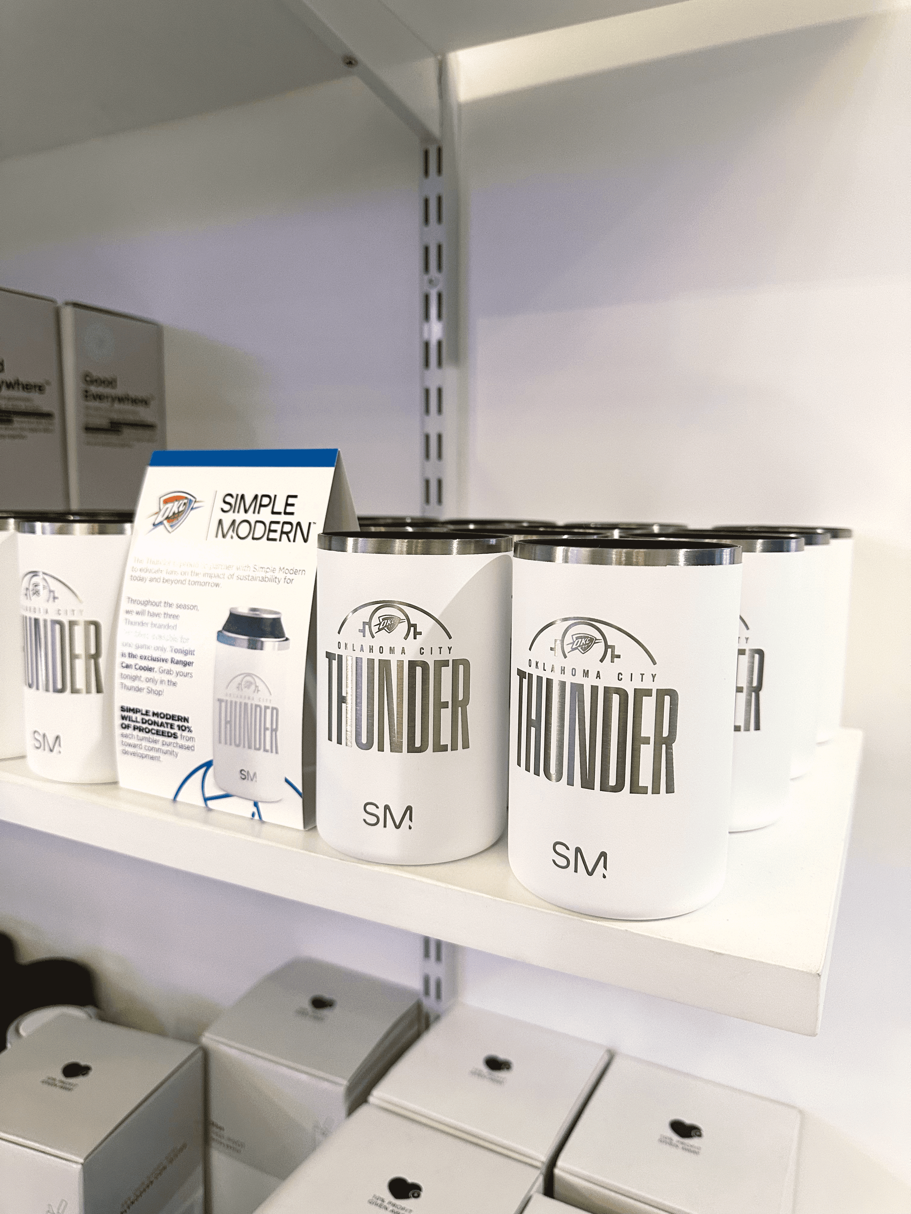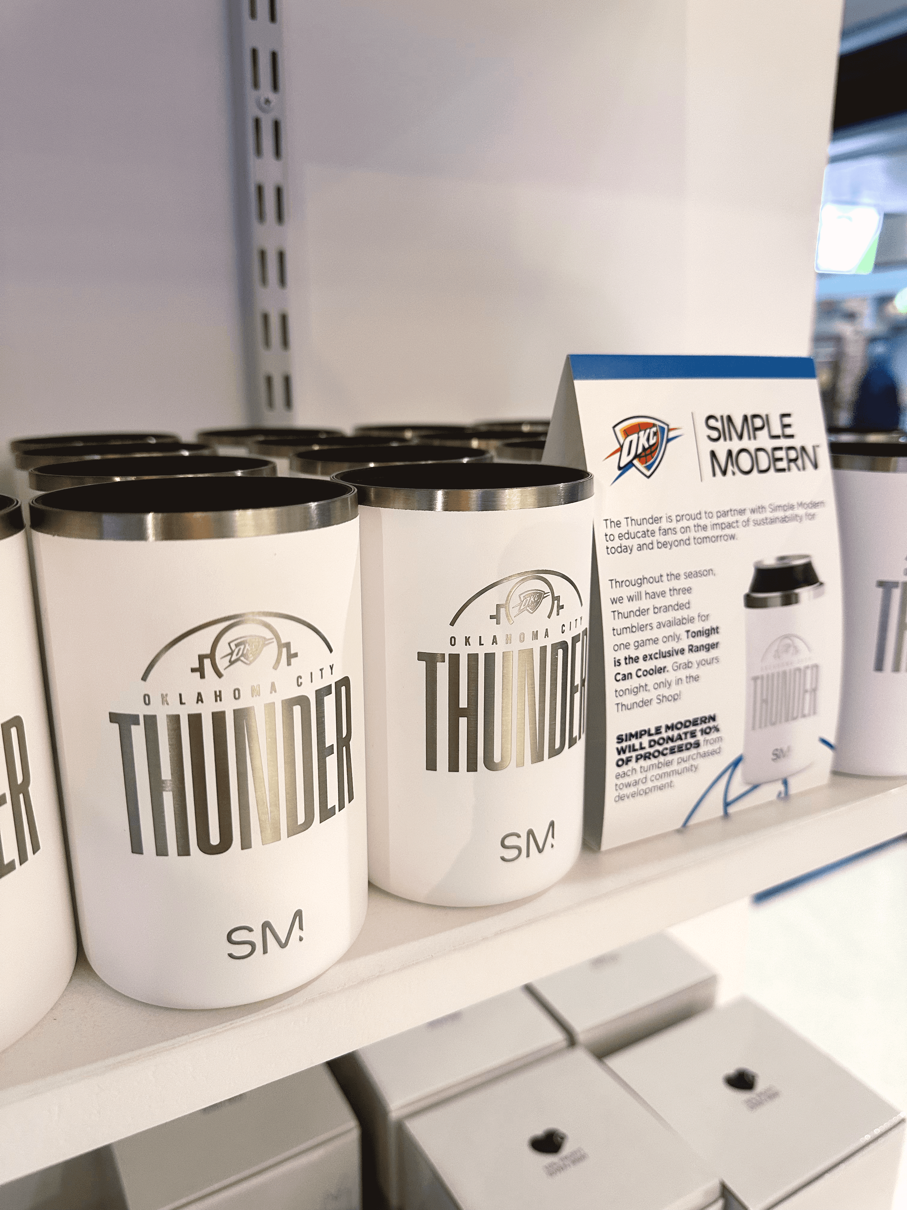 We brought two Oklahoma brands together to authentically engage with the local community and make a difference while driving profit. 10% of each Simple Modern item sold in the Thunder Shop went toward a joint community initiative. There were multiple cup drops to give fans a chance to buy an exclusive item and help drive Simple Modern sales.
