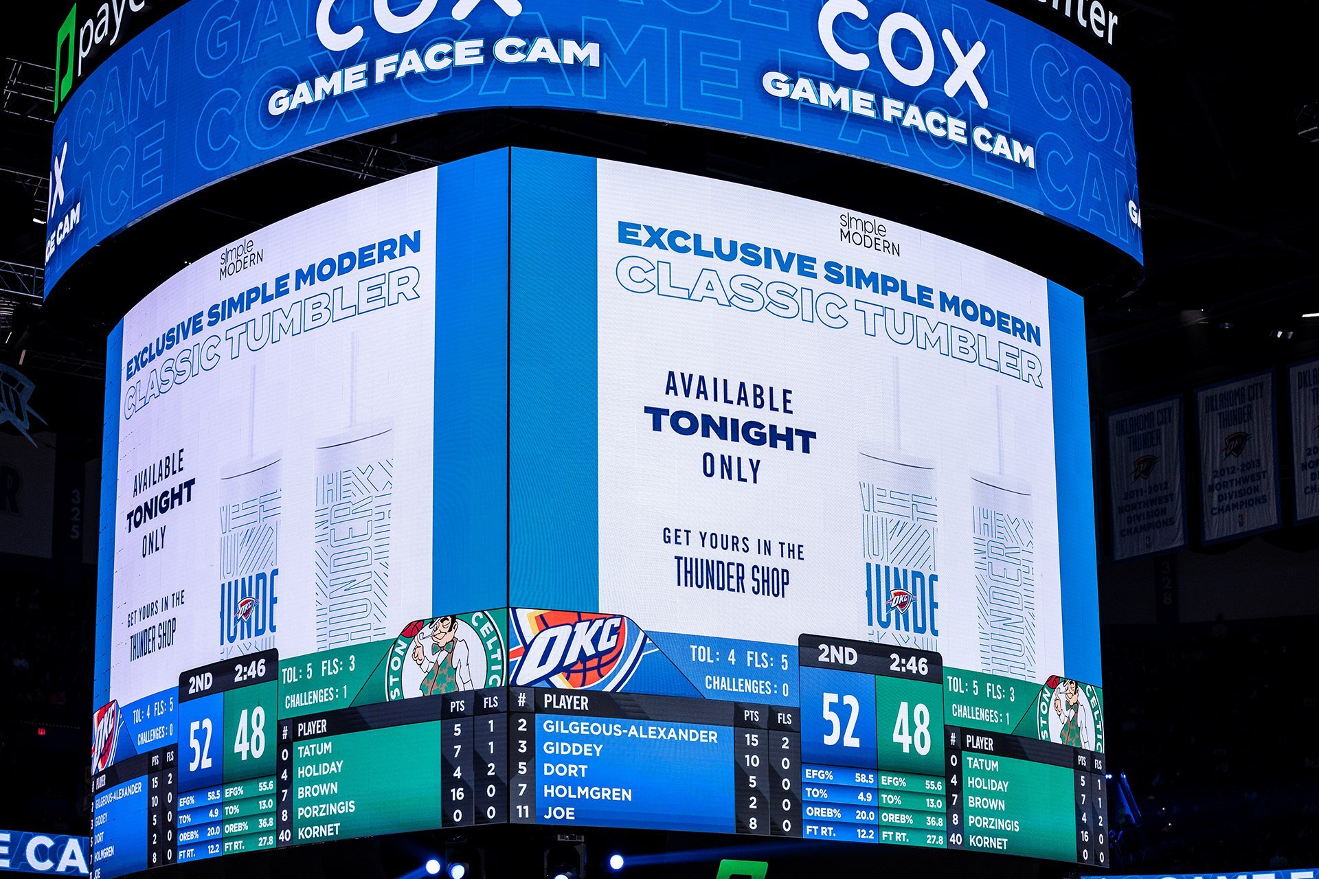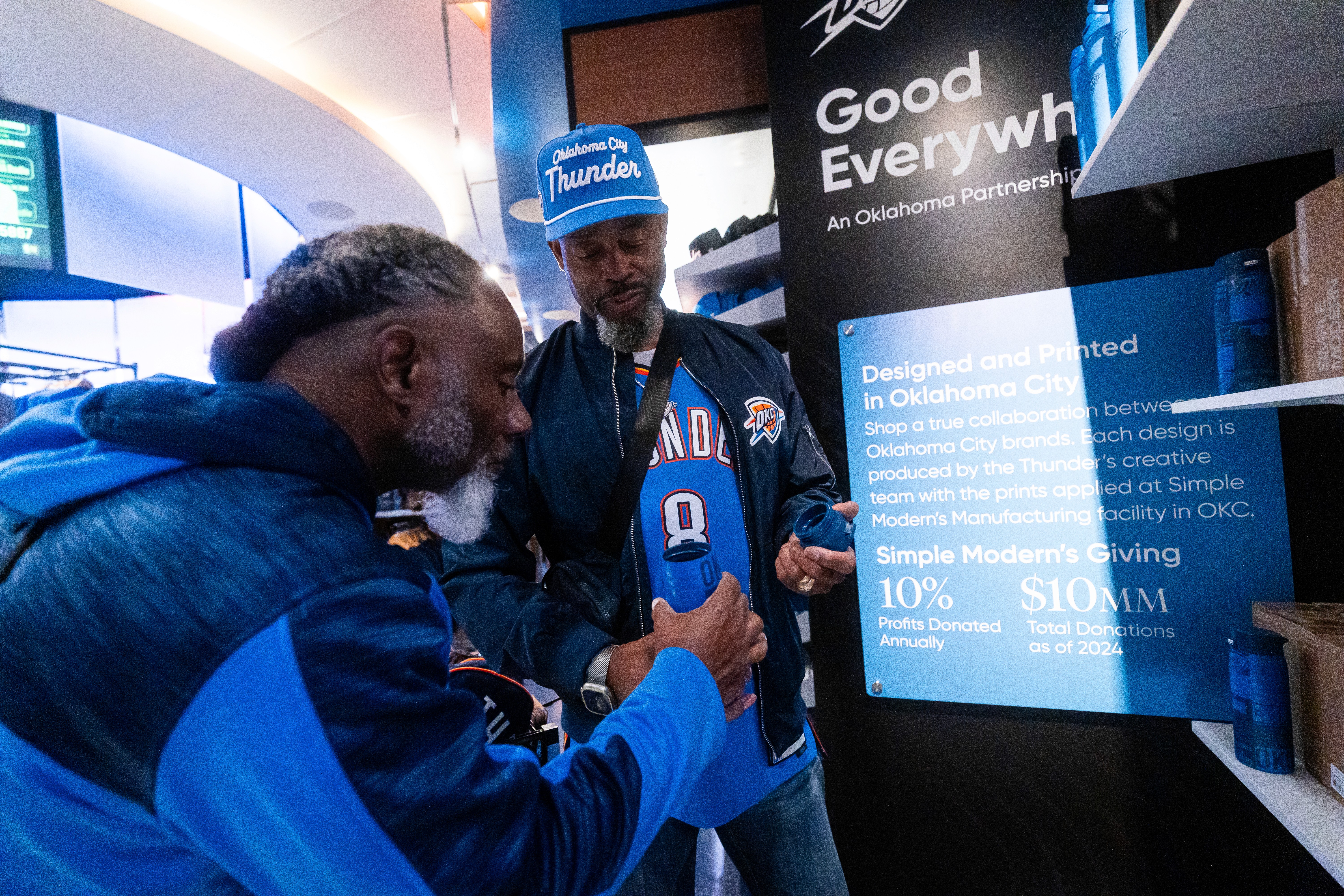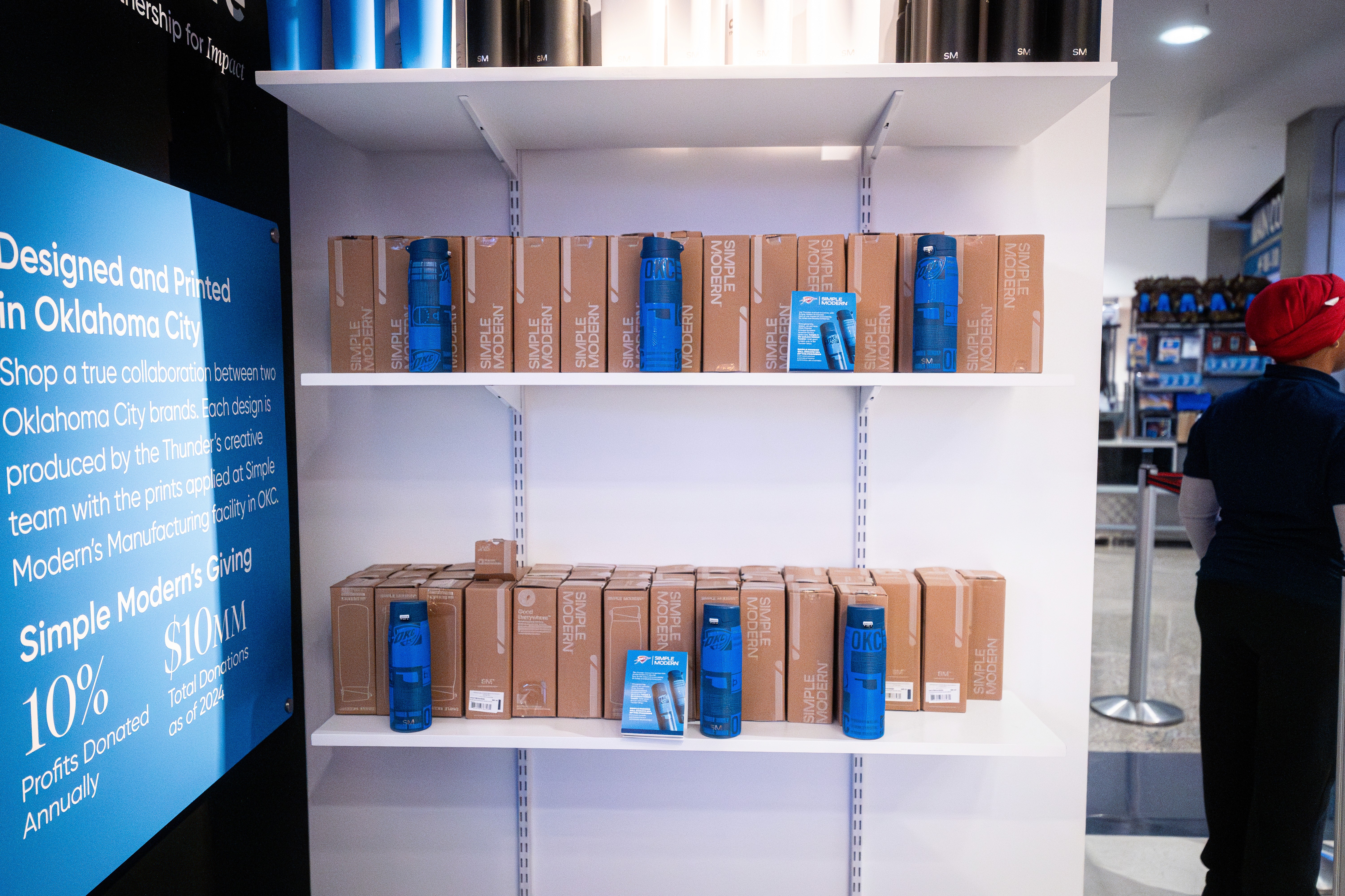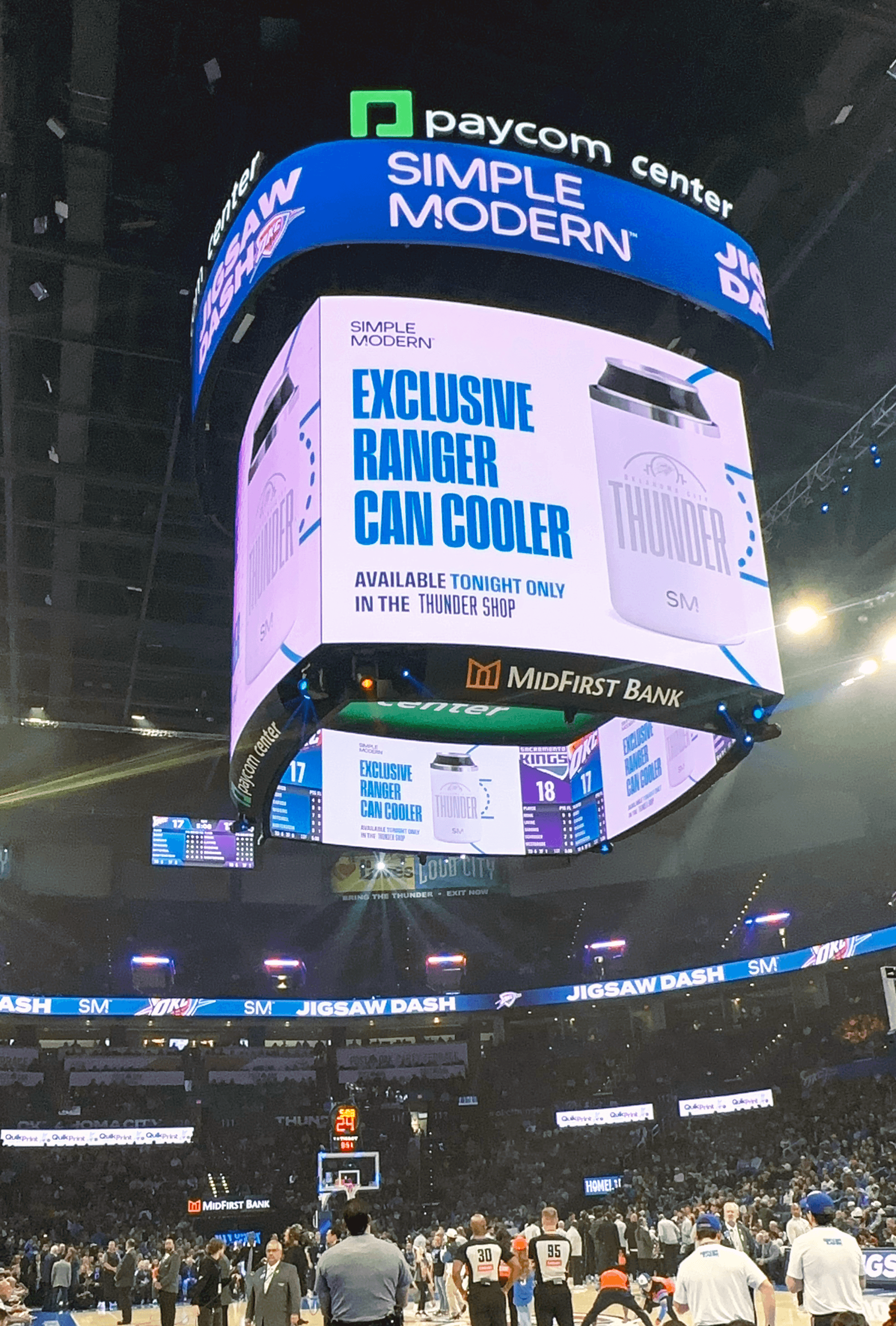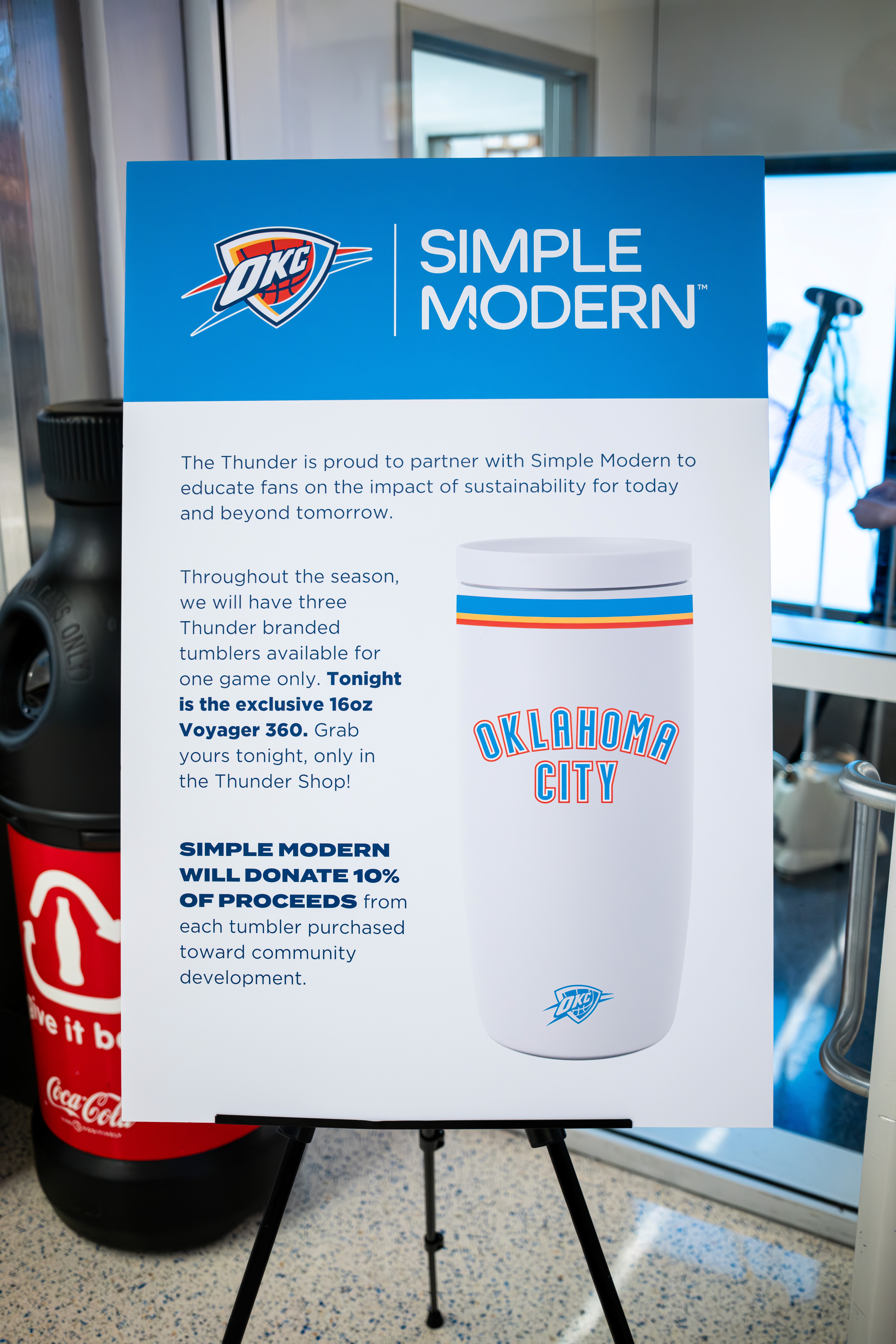 We brought two Oklahoma brands together to authentically engage with the local community and make a difference while driving profit. 10% of each Simple Modern item sold in the Thunder Shop went toward a joint community initiative. There were multiple cup drops to give fans a chance to buy an exclusive item and help drive Simple Modern sales.