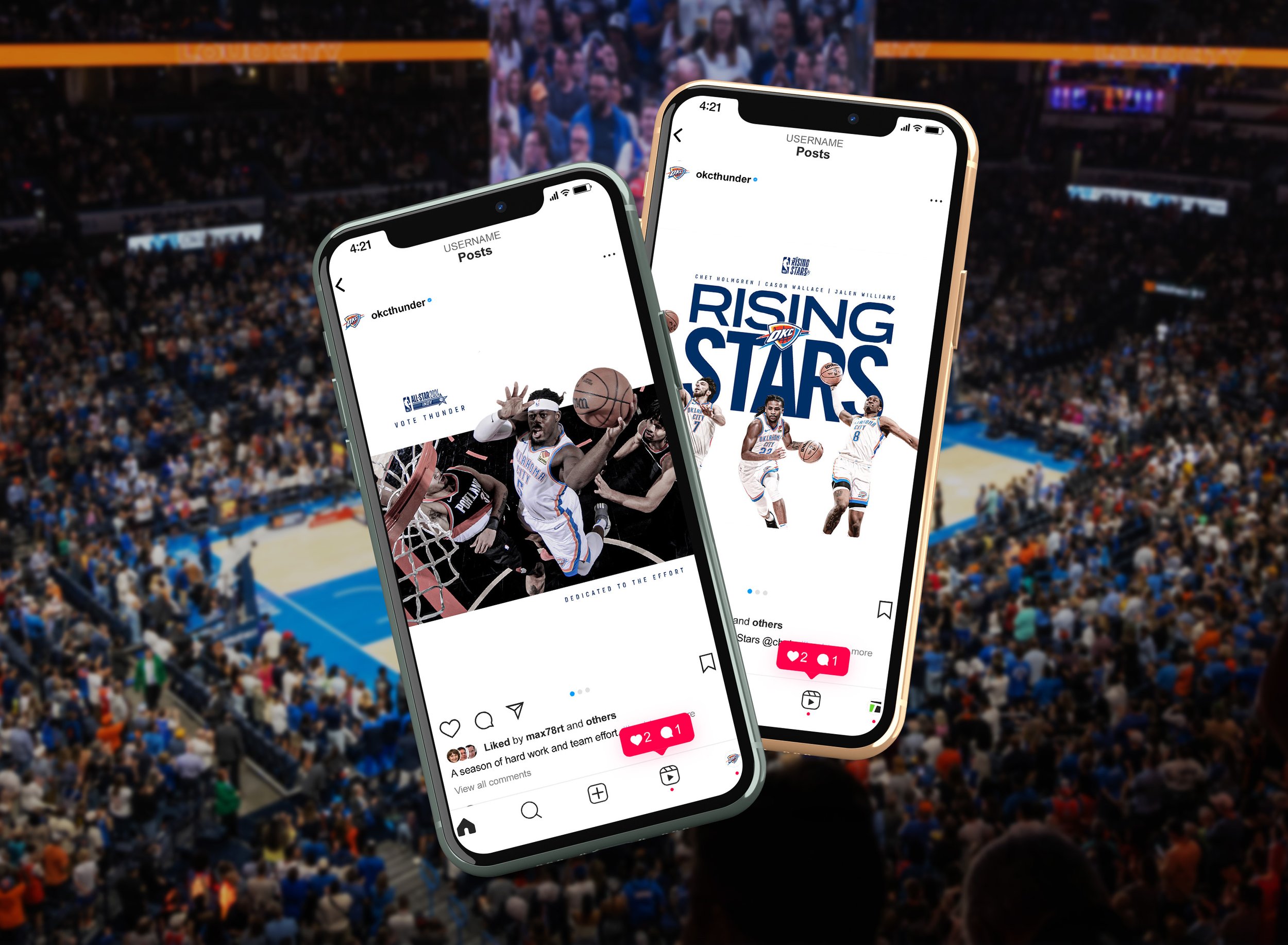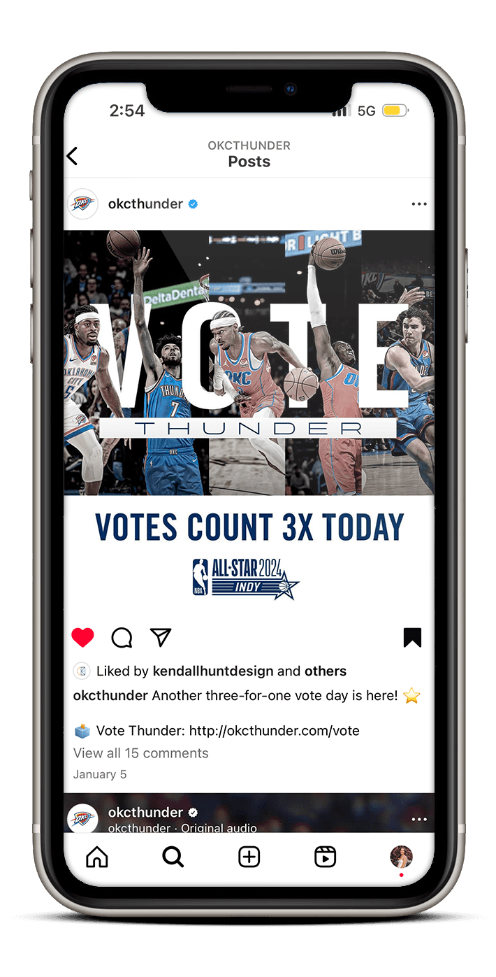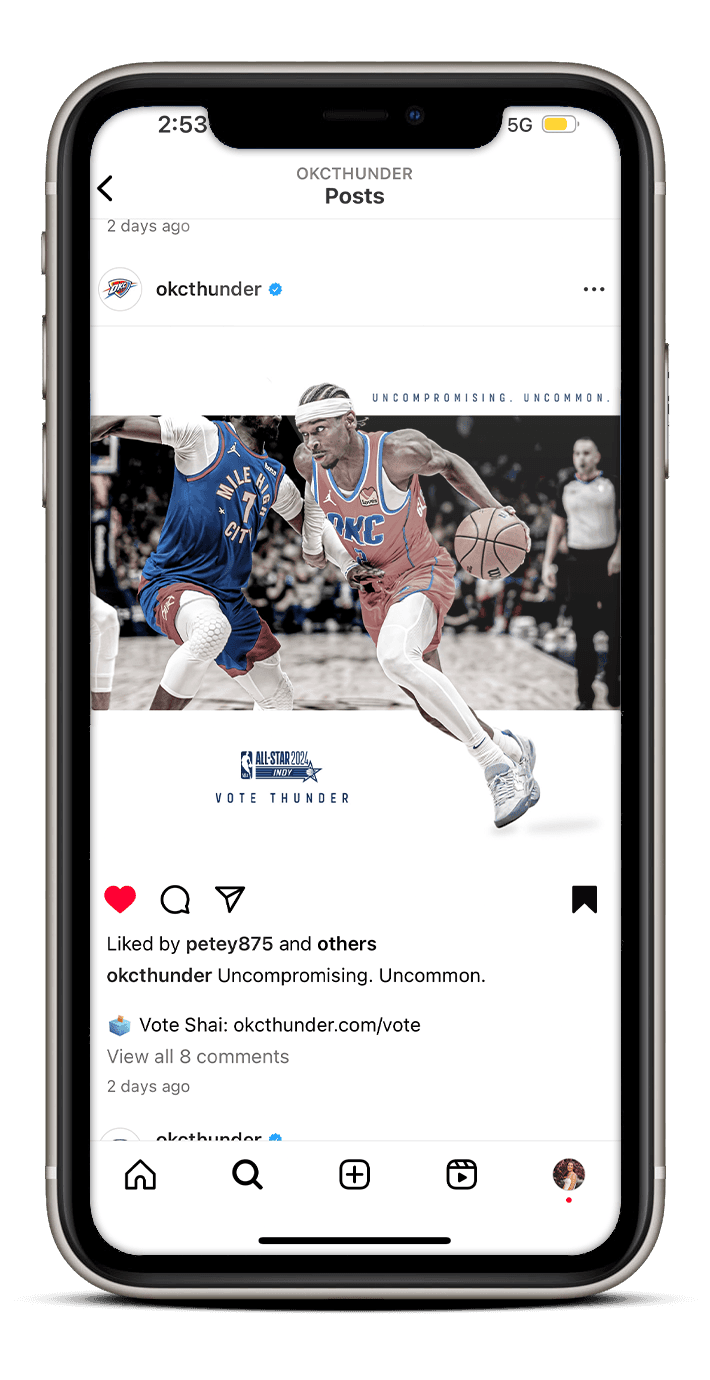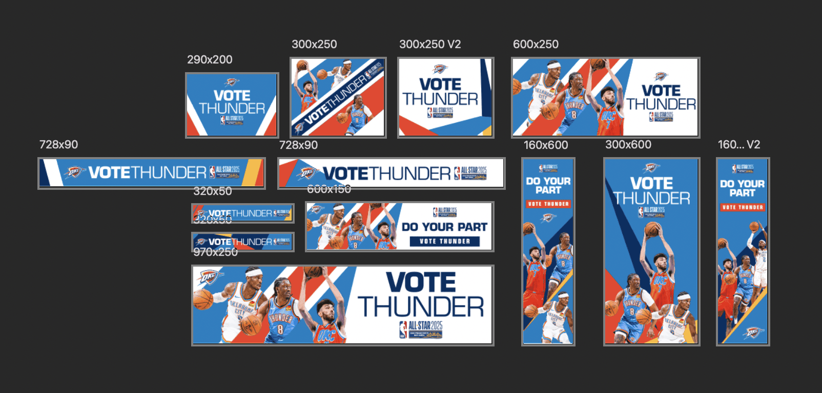 Both All-Star campaigns for 2024 and 2025 were anchored in the Thunder’s identity - talent, work ethic, authenticity, and community. I translated the strategy into a cohesive visual system used across social and digital platforms. I produced the campaign’s digital assets and animated videos, along with select print pieces, delivering a consistent look that highlighted our players, strengthened the Thunder brand, and encouraged fans to connect with our team’s identity and story throughout the All-Star push.